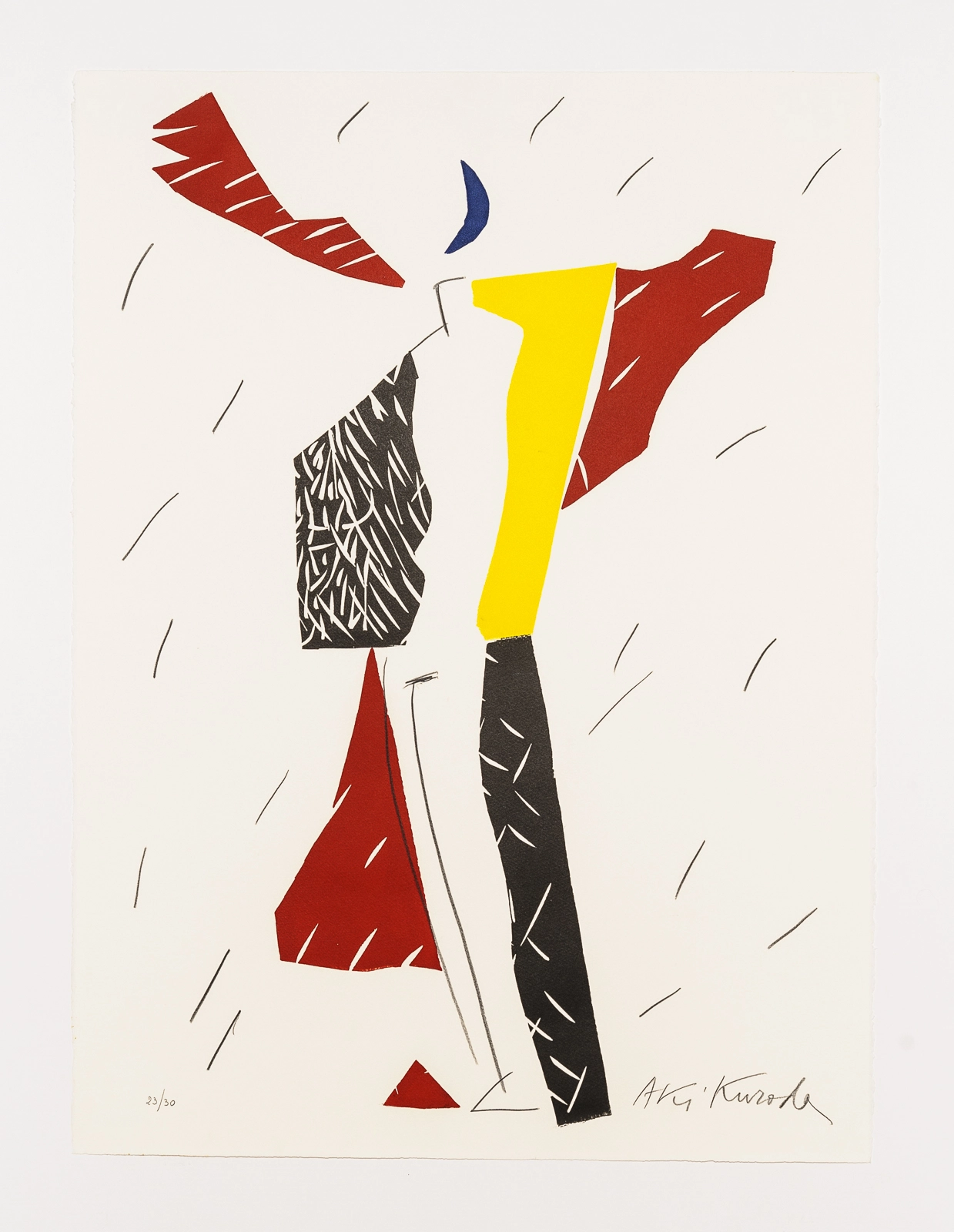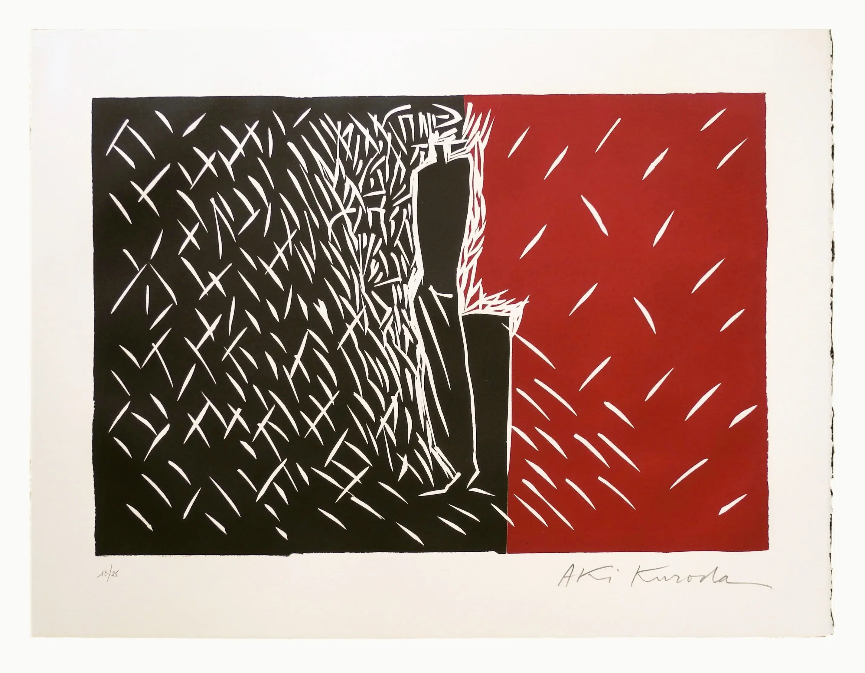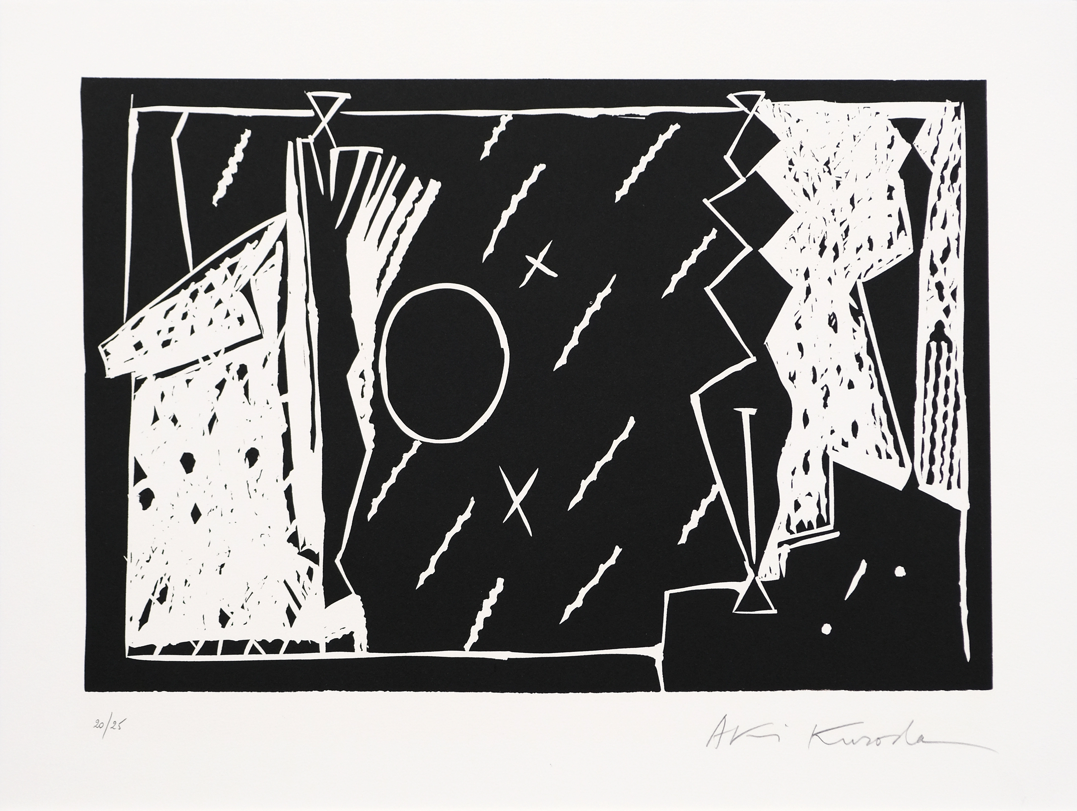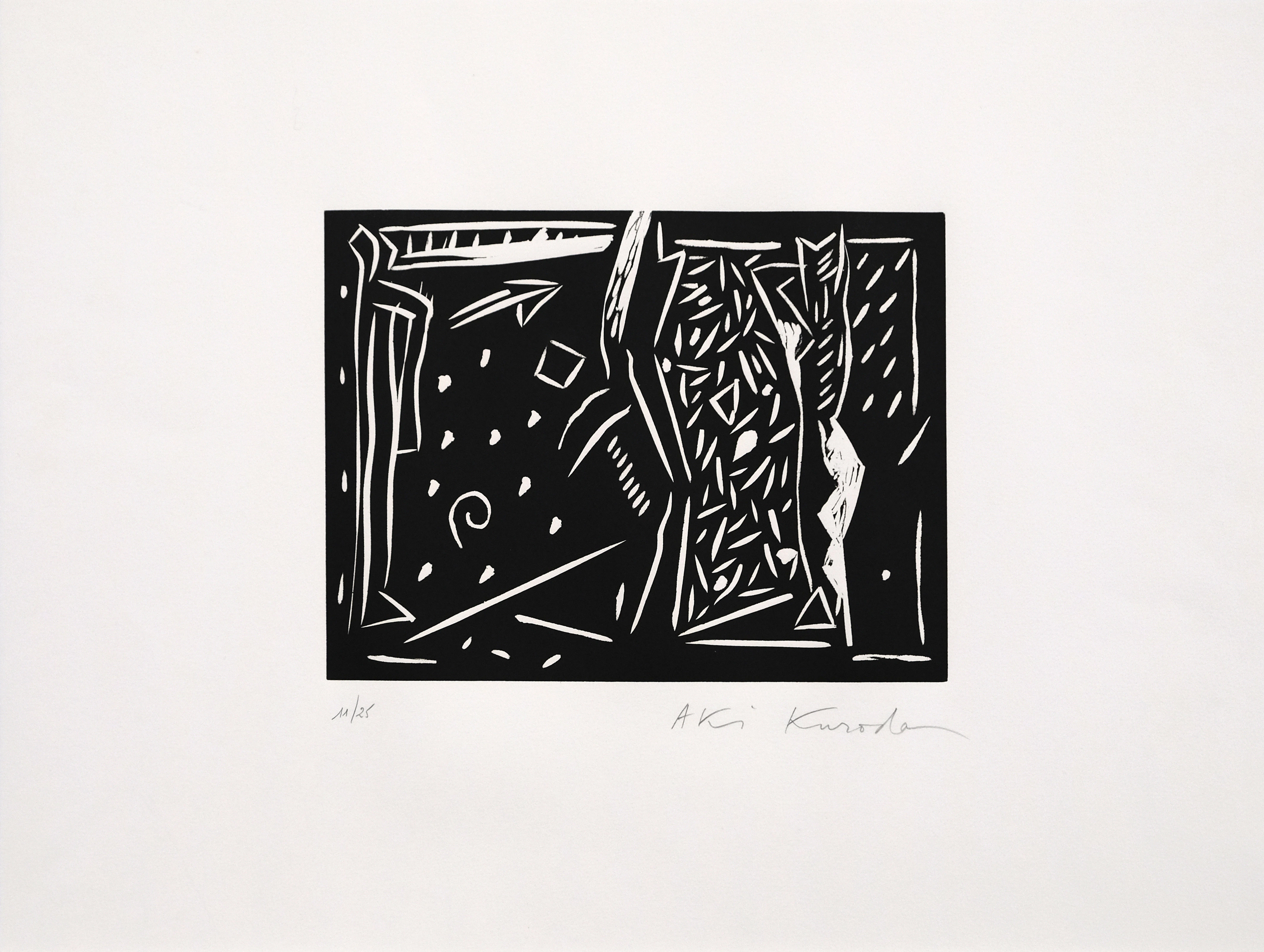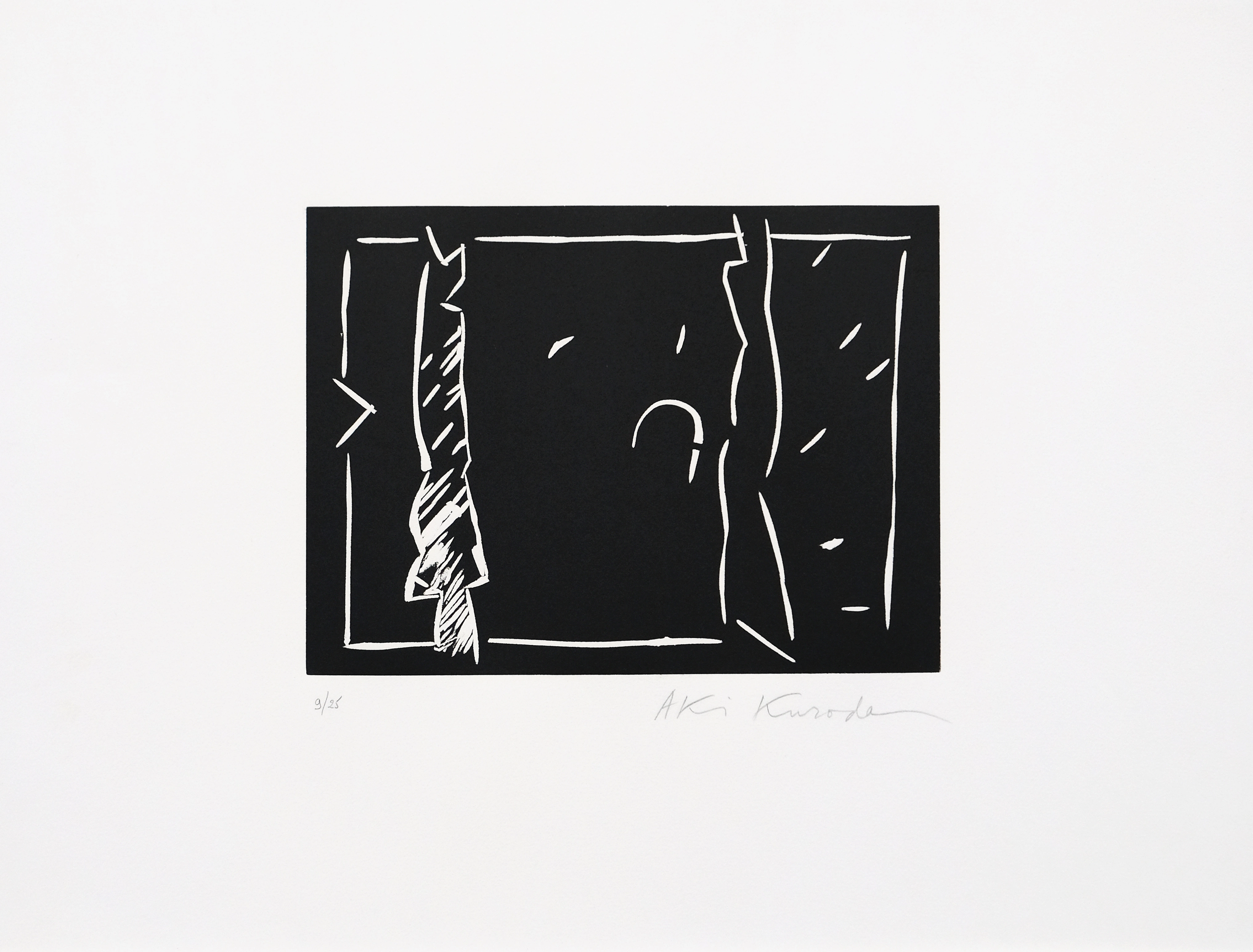 Aki Kuroda lebt und arbeitet in Paris und Tokio. Seine Werke sind durch schlichten Silhouetten auf Monochromen Leinwänden geprägt. Zentrale Themen sind - Menschen, Raum, Zeit, Kosmos, Universum. Bilder und Skulpturen von Aki Kuroda findet man in zahlreichen Museen.